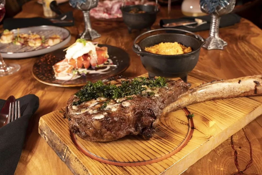 Step into Primal Steakhouse, and you’ll be greeted by a warm, inviting atmosphere that seamlessly blends modern sophistication with a touch of medieval charm. The restaurant’s decor features rich wood tones, leather accents, and subtle nods to its namesake, creating an atmosphere that is both refined and captivating.